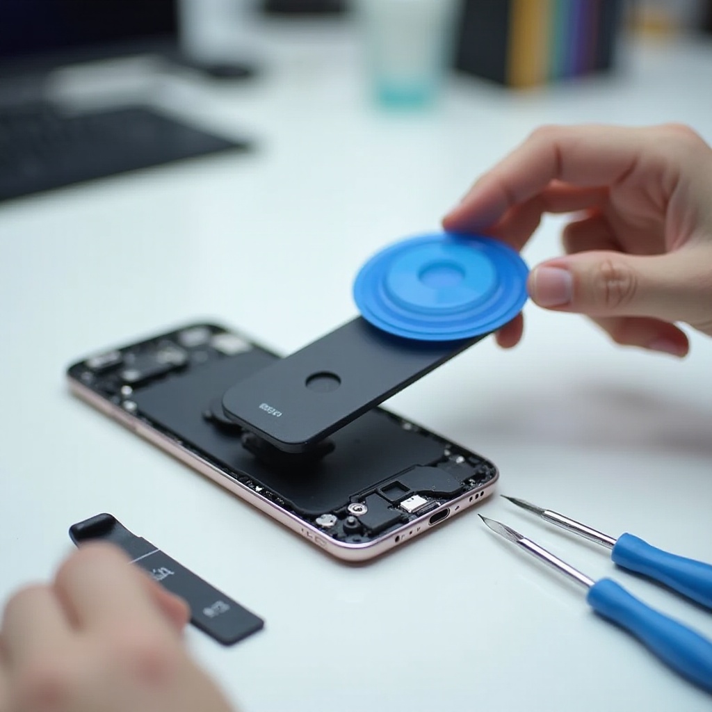 - ‘Asegurar la batería y el panel trasero’: Vuelva a colocar la batería y reconéctela correctamente. Asegure el panel trasero presionando alrededor de los bordes hasta que encaje en su lugar.
