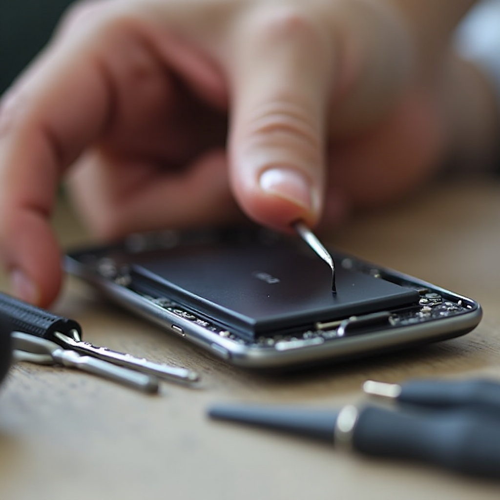 - ‘Identificación y desconexión de la batería’: Una vez dentro, localice la batería. Desconéctela con cuidado, utilizando cualquier lengüeta provista o soltándola suavemente con su herramienta.