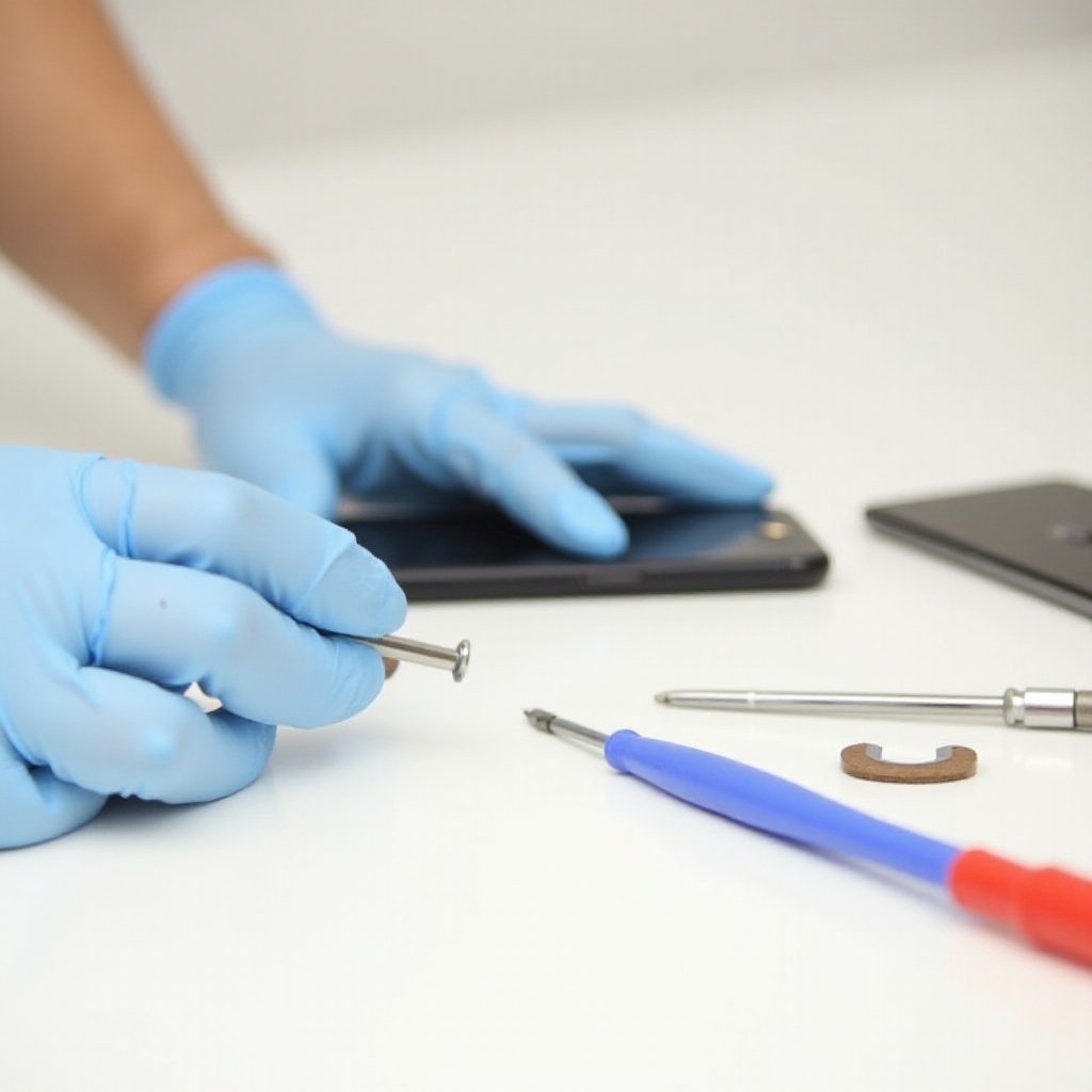- ‘Retrait du couvercle arrière’ : Utilisez l’outil de levier en plastique pour retirer délicatement le couvercle arrière, en appliquant une pression constante autour des bords pour éviter les dommages.