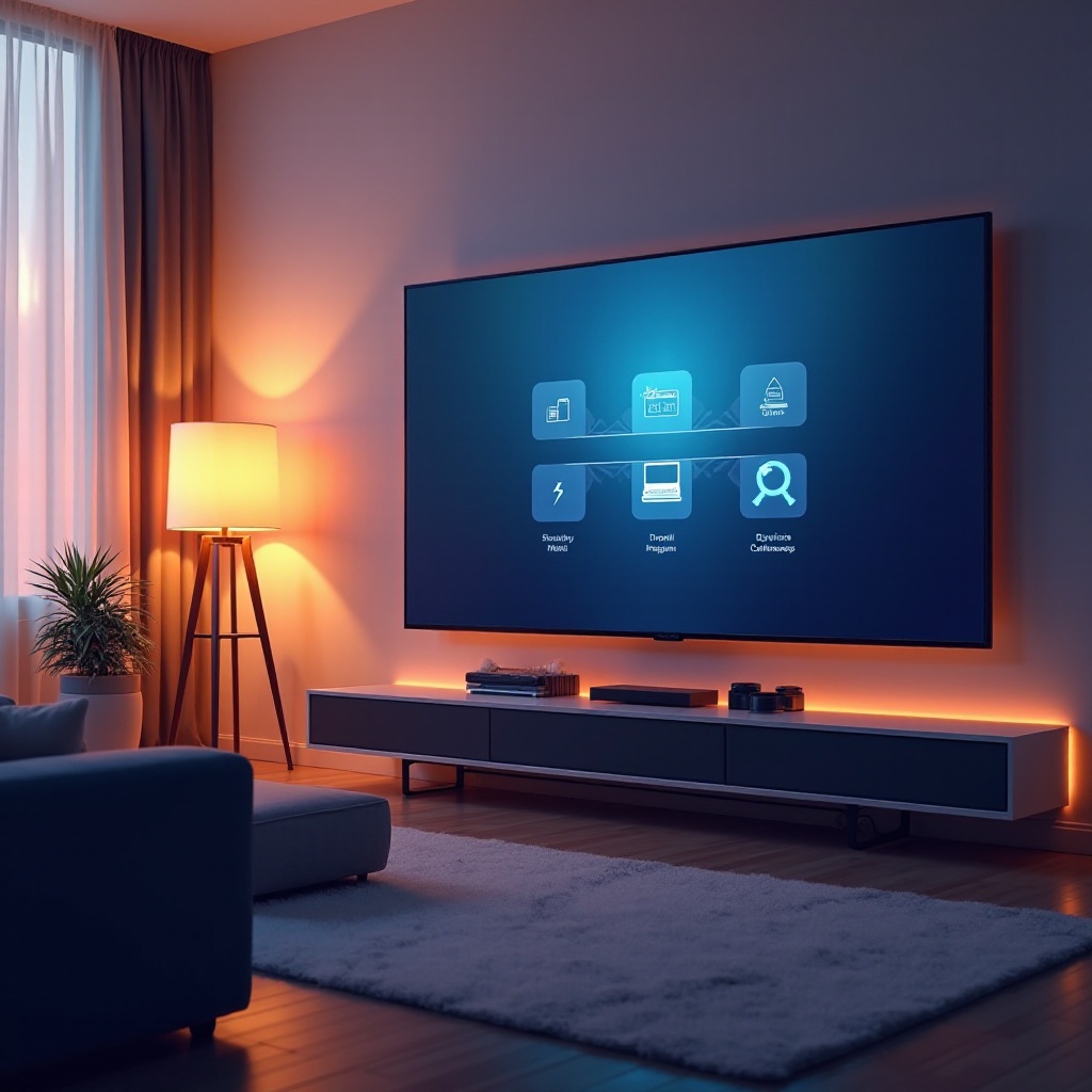 O Smart Hub simplifica a navegação, permitindo acesso rápido a todos os seus dispositivos favoritos a partir de uma interface centralizada.
